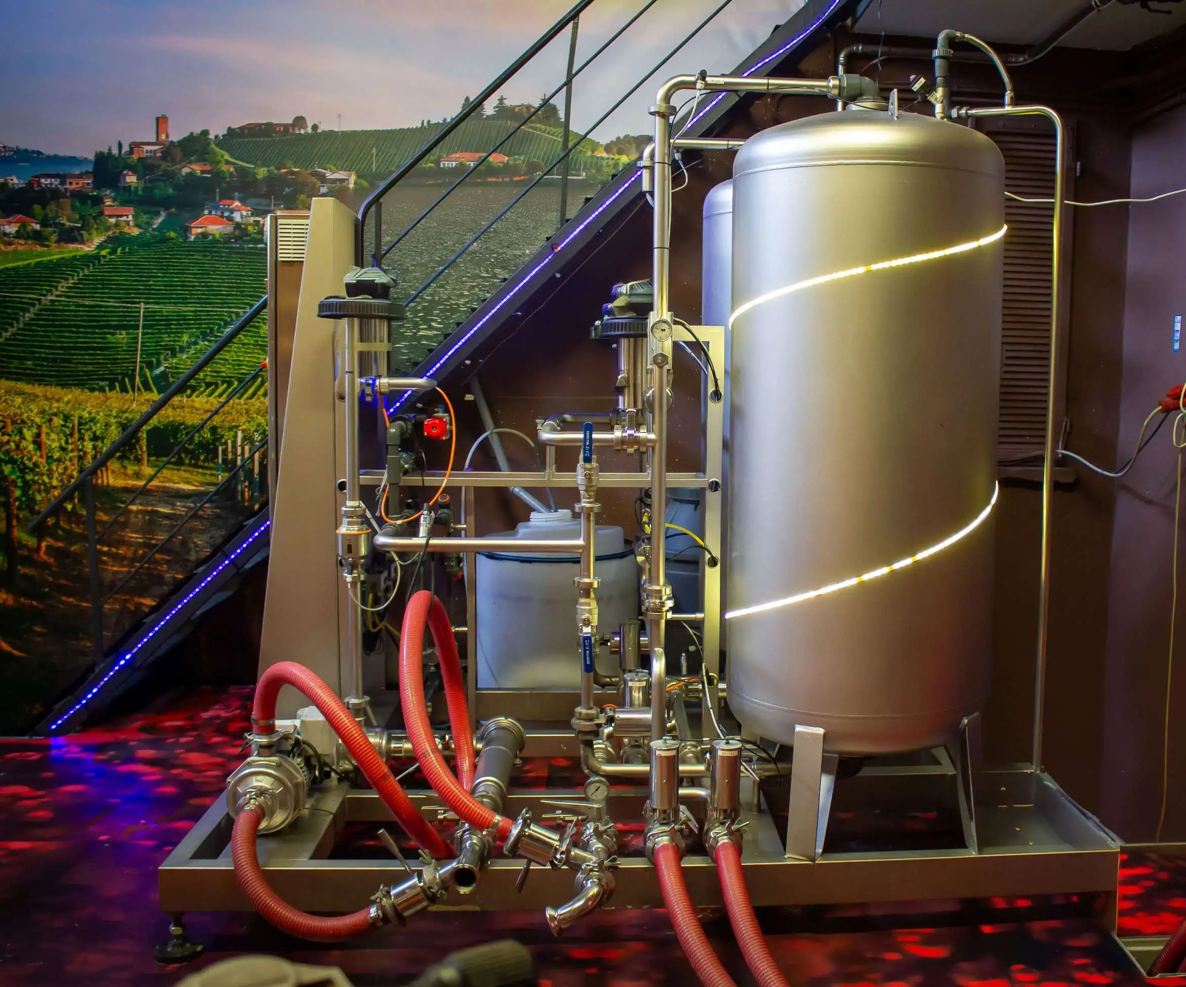 Il sistema di filtrazione e pompaggio Tecno B viene utilizzato per rimuovere particelle solide sospese nel vino, migliorando la sua limpidezza e stabilità. Questo macchinario è inoltre utile per la filtrazione sterile, permettendoci di eliminare i microrganismi che potrebbero alterare il vino durante la fase di imbottigliamento.